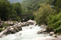 The valley begins at the Diga della Verzasca. The dam wall is known from the film Golden Eye from 007. The brave dare the adrenaline rush bungy jump here. We continue into the valley to the Ponte dei Salti (also known as the Roman Bridge). Through inquiries and sometimes steep ascents, we reach beautiful hamlets with fascinating stone houses. Despite a few drops of sweat, such ascents are worthwhile. But you can also take it easy, a family-friendly hiking trail leads along the river